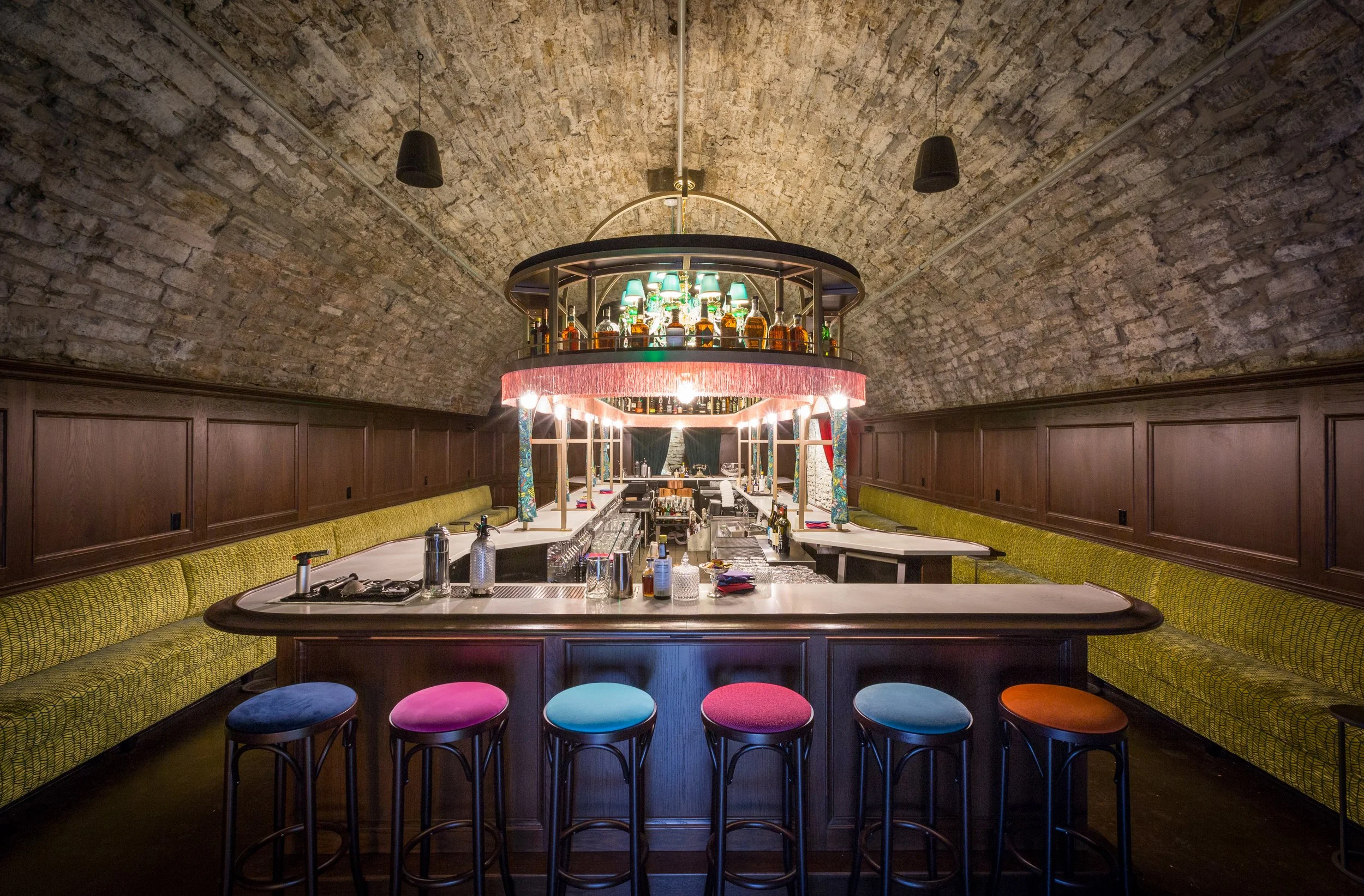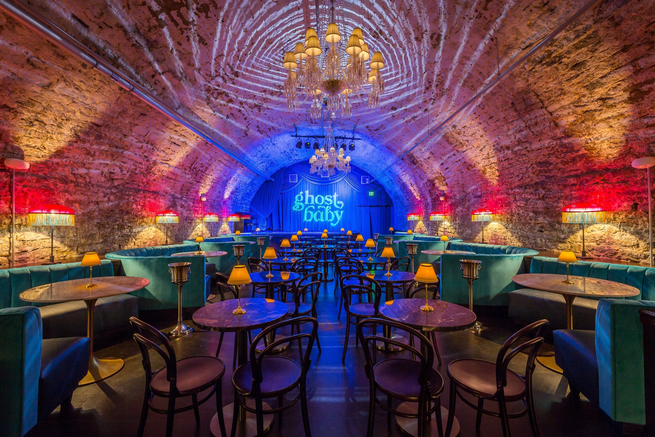 A hand-crafted, ornate bar styled after a baby’s rattle is the centerpiece of this room that doubles as an undercover hideaway from the everyday and as the gateway to the classically appointed Ghost Baby Den. Convene a hushed conversation on one of the plush sofas circling the room, or join lively exchanges pulled up to the bar.
